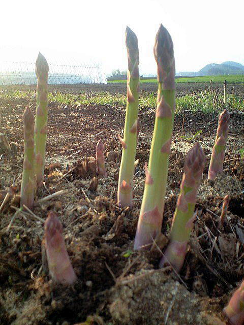力強く大地を割って出てくるアスパラガス。北海道の初夏の味。